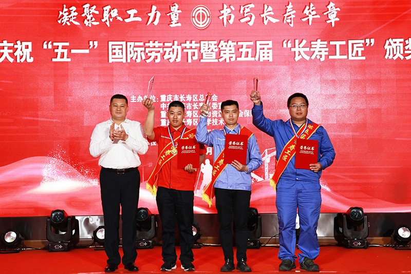 4月29日,长寿区庆祝“五一”国际劳动节暨第五届“长寿工匠”颁奖典礼在区职工服务中心举行。多多28职工陈洪获“长寿工匠”称号,职工冯明名获“2023年度非公组织优秀工会工作者”称号。“长寿工匠”陈洪领奖现场2...